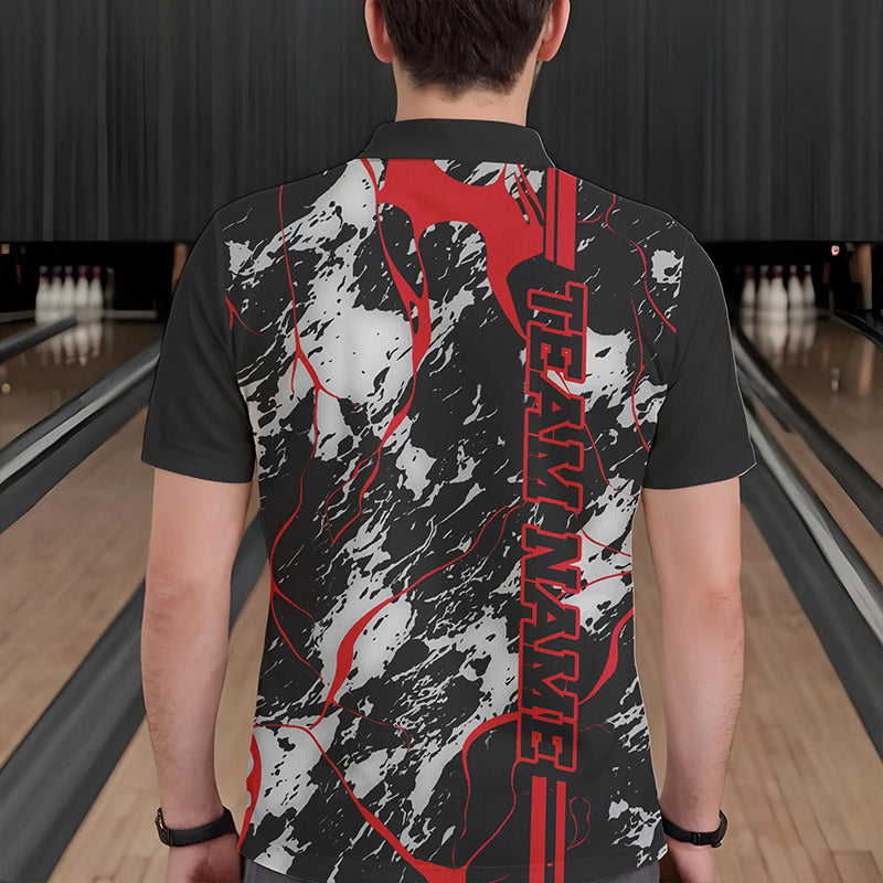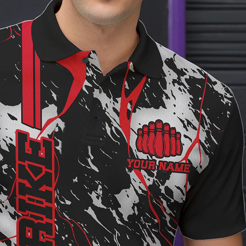 Custom Gray And Red Strike Bowling Polo Shirts For Men, Bowling League Team Uniform IPHW8861