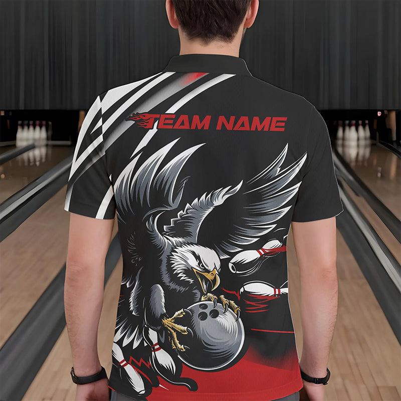 Custom Black And Red Eagle Bowling Jerseys, Bowling Team Men Polo Shirts Bowlers Outfits IPHW8886