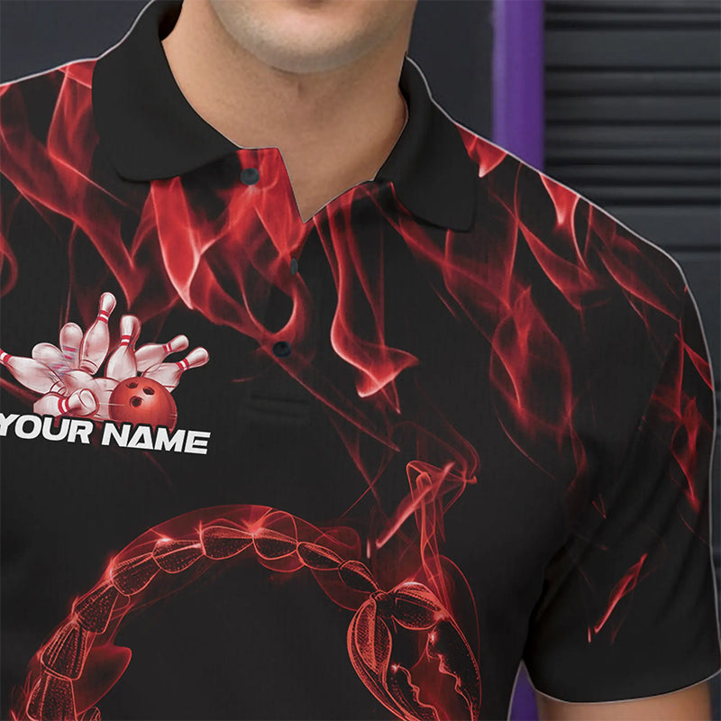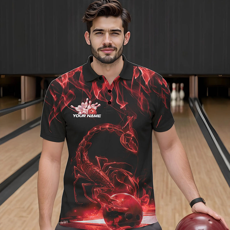 Custom Black And Red Flame Scorpio Zodiac Bowling Men Polo Shirts, Scorpion Bowling Team IPHW8970