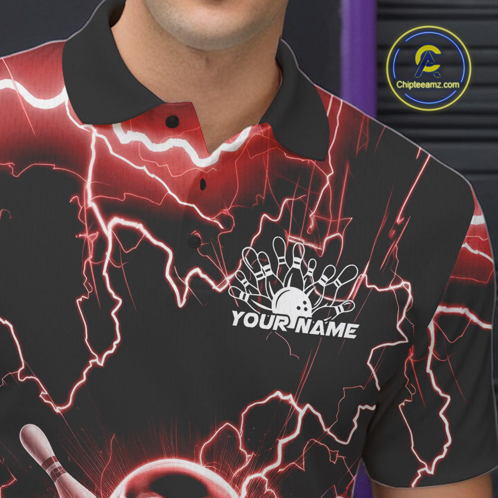 Custom Red Thunder Lightning Skull Bowling Polo Team Shirts For Men, Halloween Outfit IPHW9498