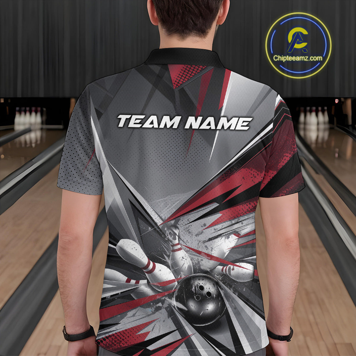 Custom Red And Gray Bowling Polo Team Shirts For Men, Bowler Outfit Bowling League Shirt IPHW9557