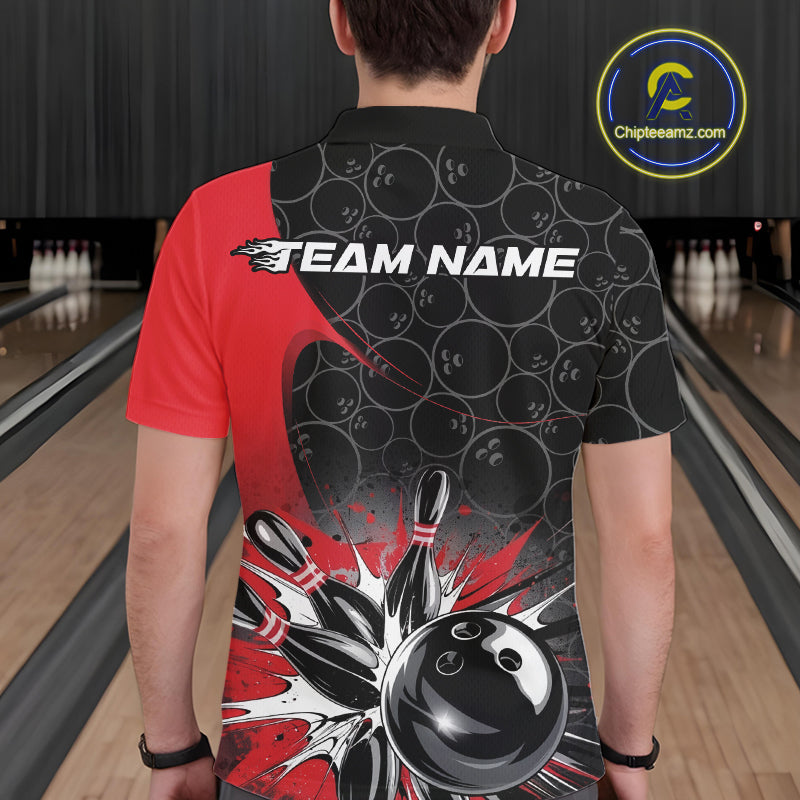 Custom Red Bowling Team Polo Shirts For Men, Bowling Pattern Bowling League Shirt IPHW9623