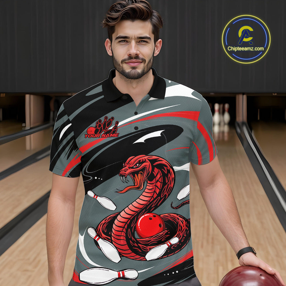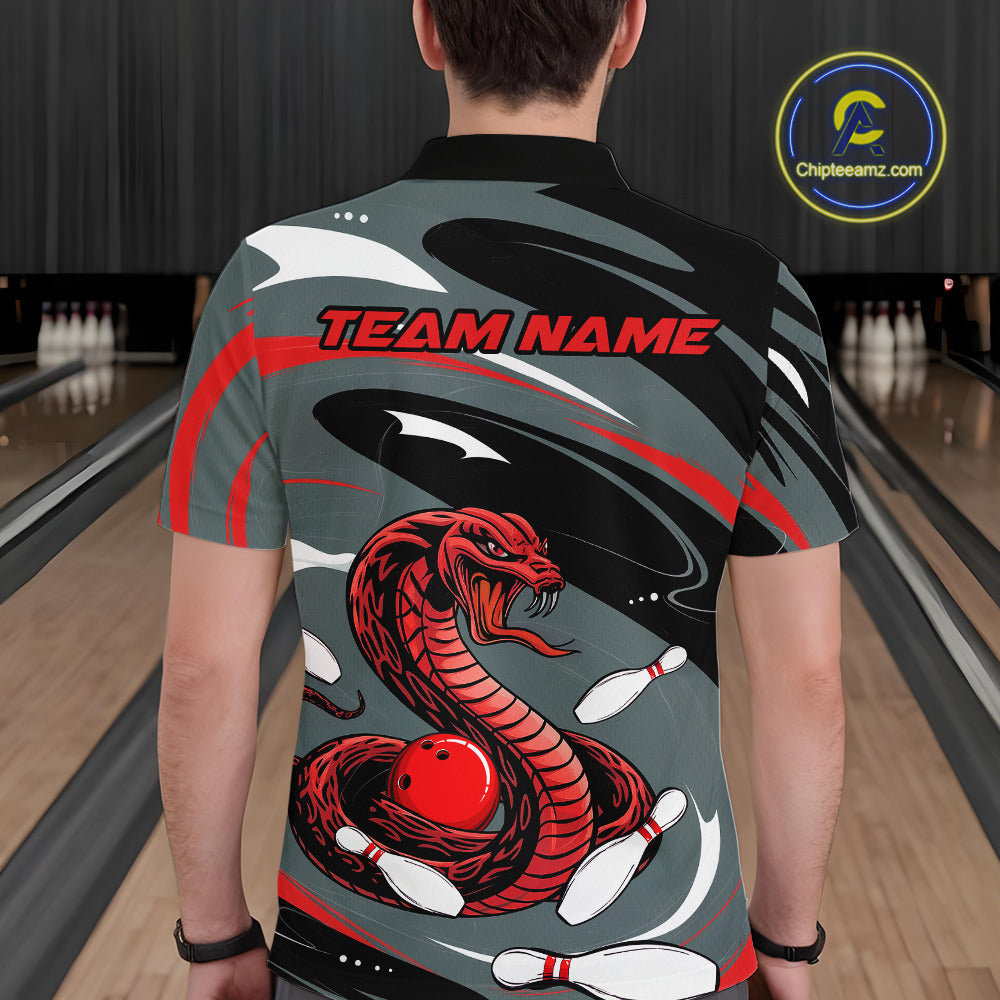 Custom Gray And Red Cobra Snake Bowling Polo Shirt For Men, Cobra Bowling Team Jersey IPHW9893