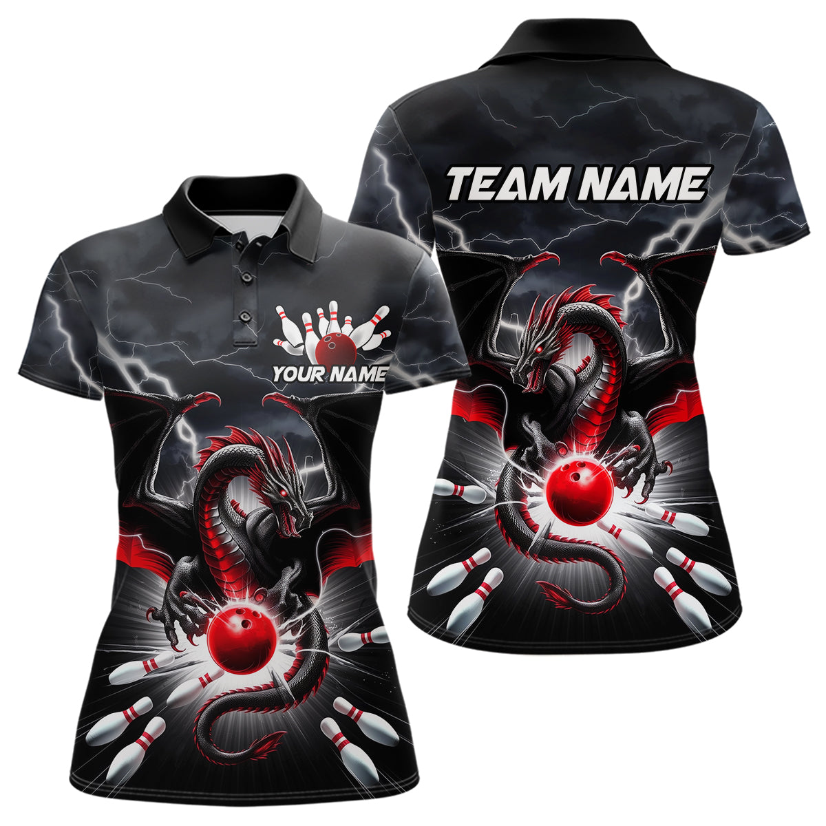 Custom Thunder Lightning Red Dragon Bowling Team Polo Shirts For Women, Bowling Jerseys IPHW9110