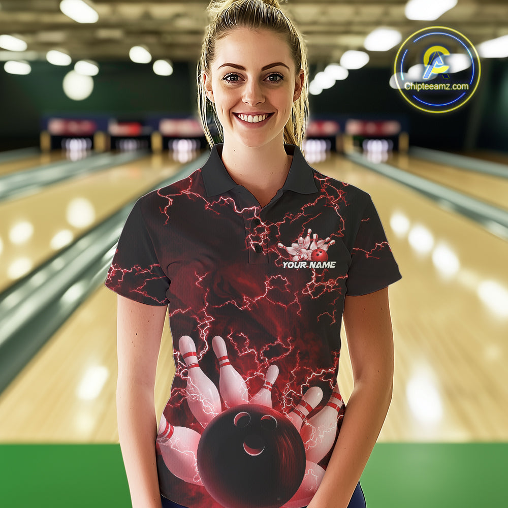 Custom Red Thunder Lightning Women Bowling Polo Team Shirts, Bowling Jerseys IPHW9505