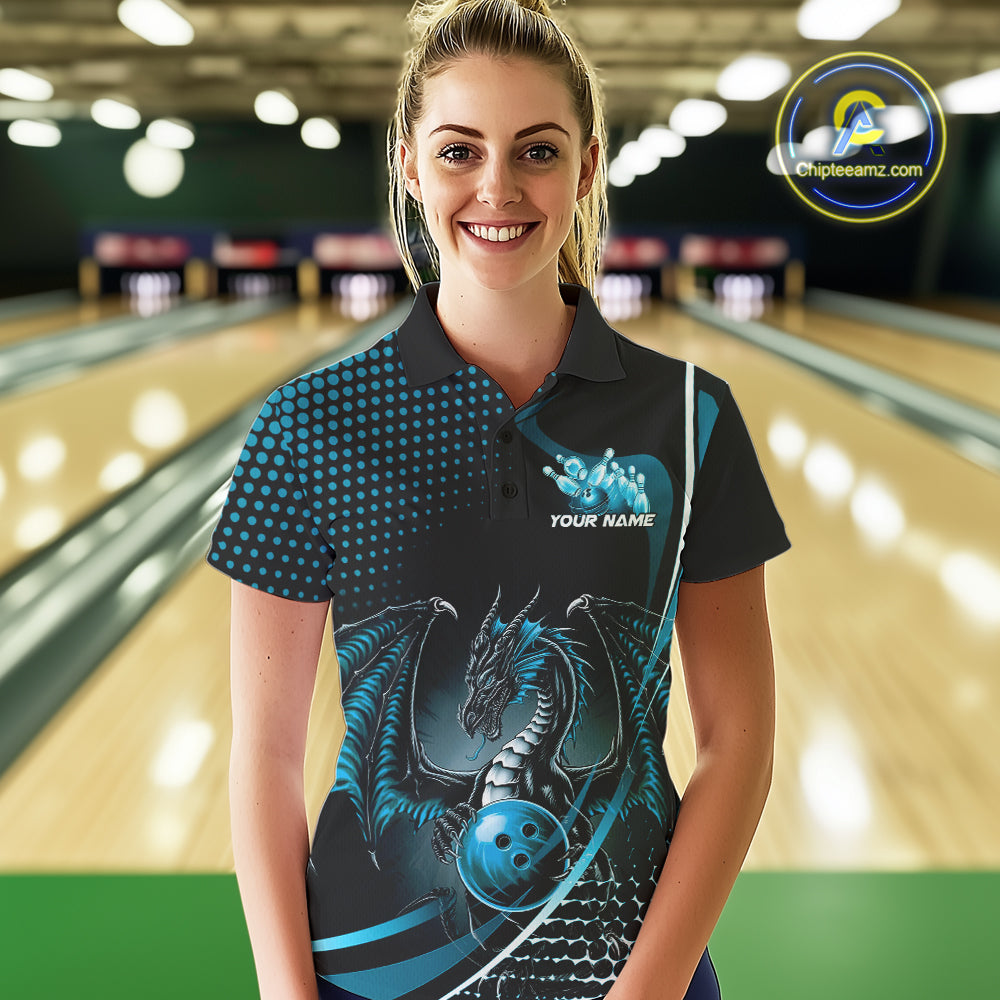 Custom Red Dragon Bowling Jerseys, Mystical Bowling Team Uniform Polo Shirts For Women IPHW9536