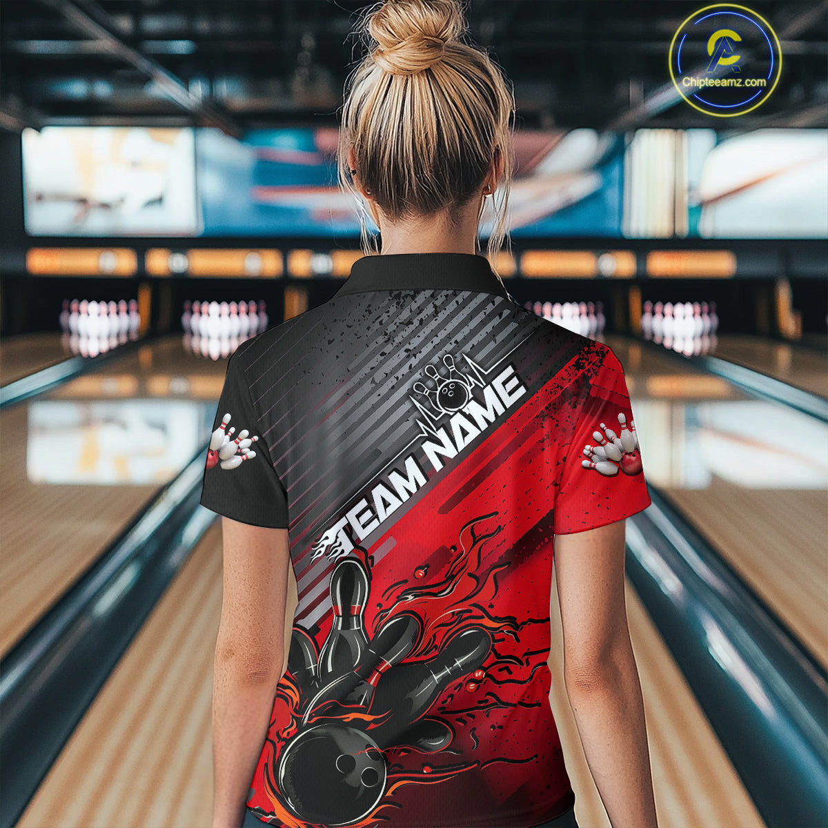 Custom Red Strike Flame Bowling Polo Shirts For Women, Bowling Team Shirt Bowlers Outift IPHW9615
