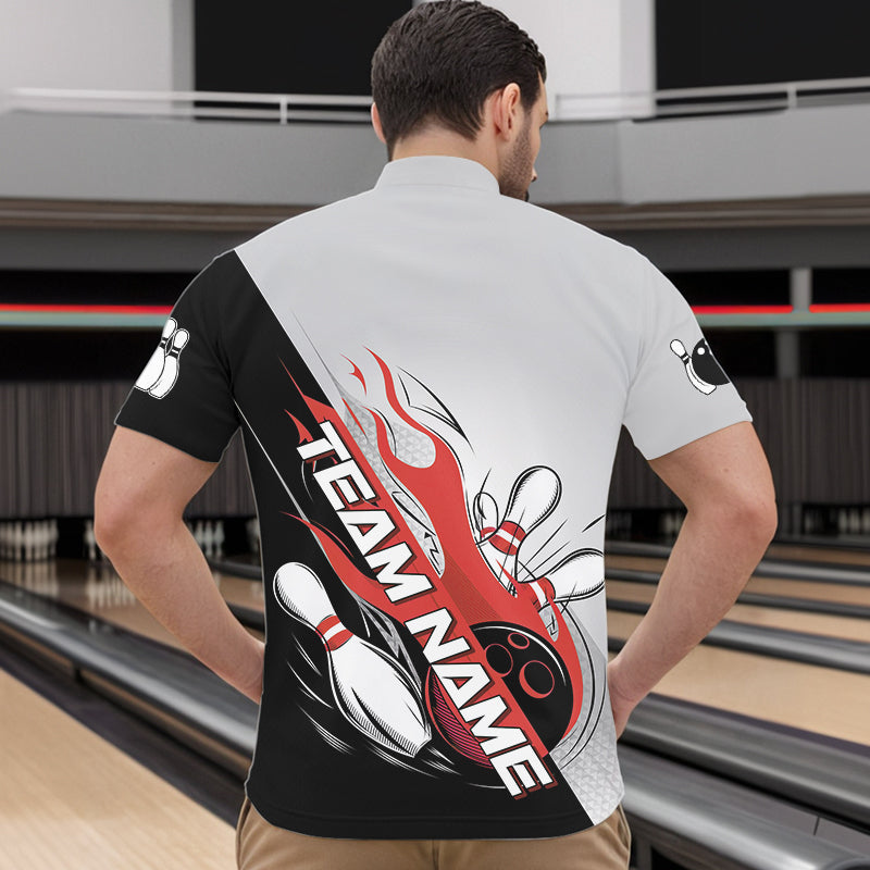 Custom Red Flame Strike Bowling Men Quarter-Zip Shirts, Bowling Team Uniform Bowling League Shirt IPHW8780