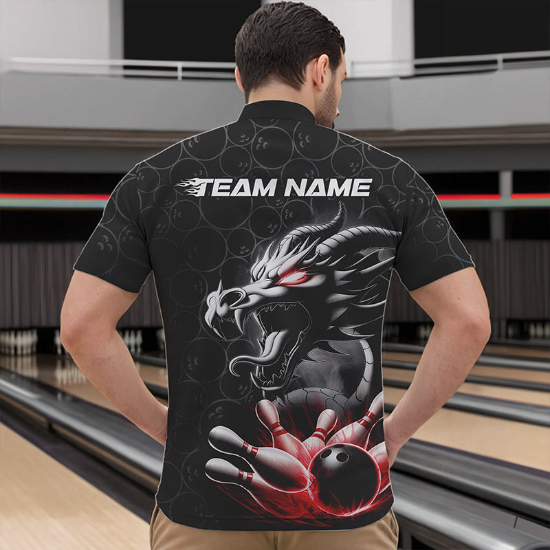 Custom Black And Red Dragon Bowling Men Quarter-Zip Shirts, Bowling Pattern Dragon Bowler Outfit IPHW8916