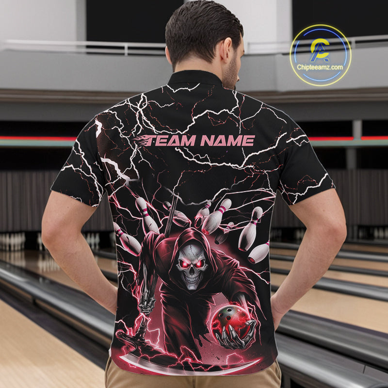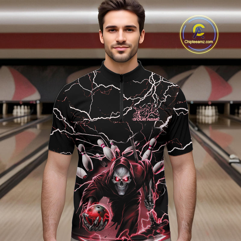 Custom Black And Red Lightning Grim Reaper Bowling Men Quarter-Zip Shirt, Halloween Outfit IPHW9802