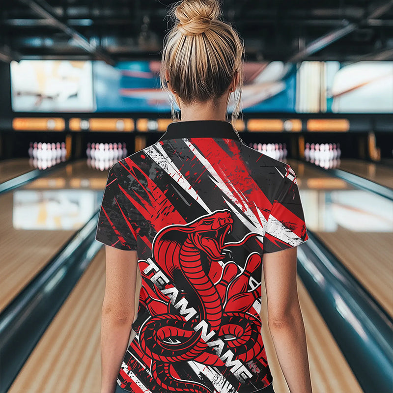 Custom Black And Red Cobra Snake Bowling Jerseys, Bowling Team Womens Quarter-Zip Shirts IPHW8580