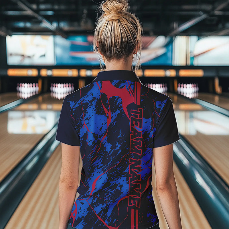 Custom Blue And Red Strike Bowling Quarter-Zip Shirts For Women, Bowling Team Uniform IPHW8858