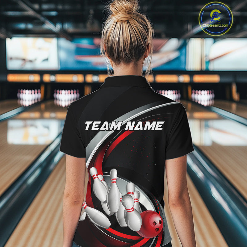 Custom Black And Red Bowling Team Jerseys, Bowler Uniform Bowling Women Quarter-Zip Shirt IPHW9276