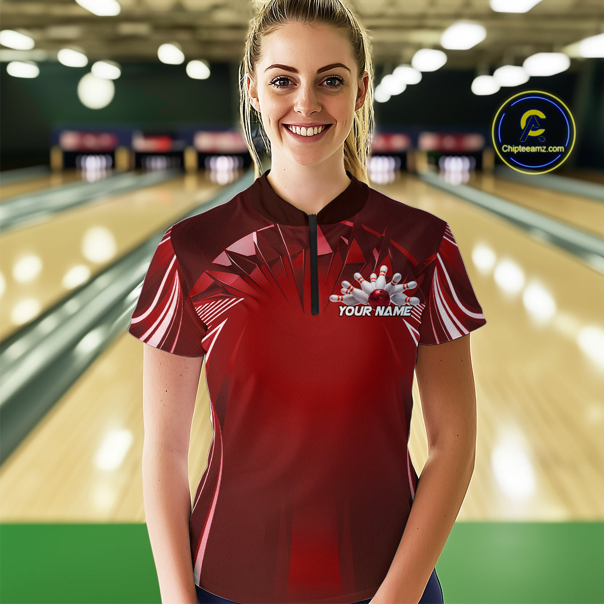 Custom Red Bowling Tournament Bowling Women Quarter-Zip Shirts With Team Name IPHW9282