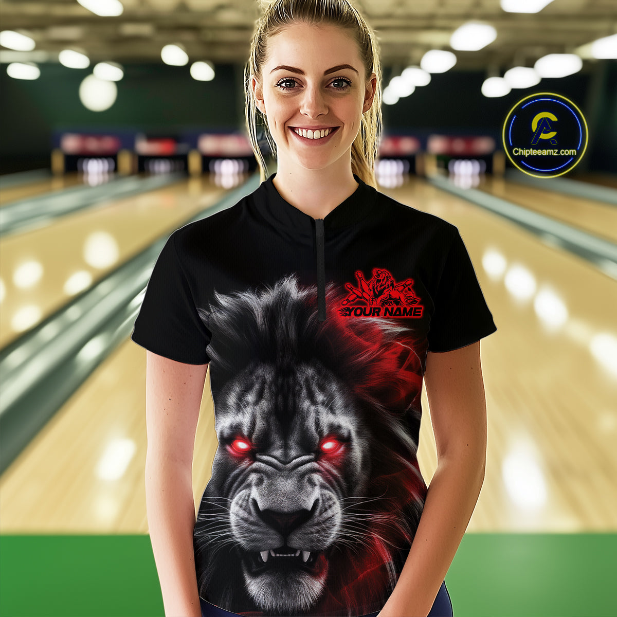 Custom Black And Red Lion Bowling Quarter-Zip Team Shirt For Women, Lion Bowling Jersey IPHW9328