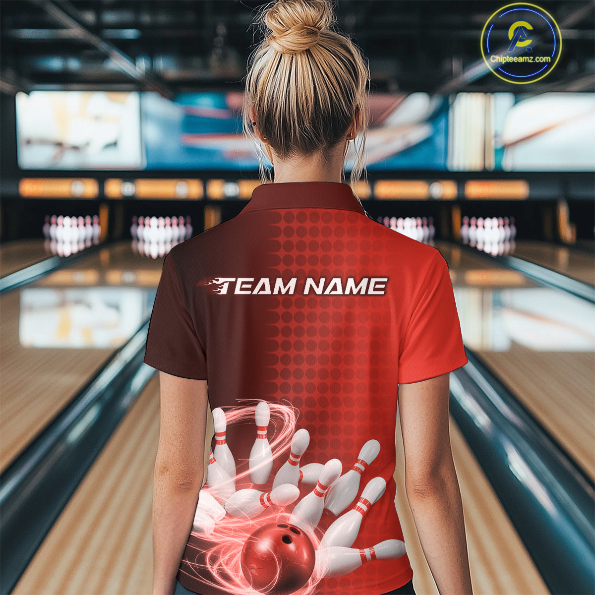 Custom Red Flame Bowling Women Quarter-Zip Shirts, Bowling Tournament Team Shirt IPHW9408