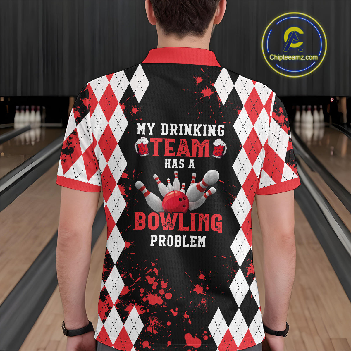 Red argyle pattern Retro Bowling Shirts For Men Custom My drinking team has a bowling problem NQS9825