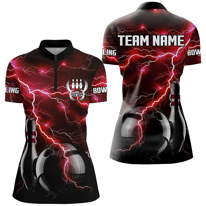 Red Lightning Thunder Black Women Bowling Polo, Quarter zip Shirt custom storm bowling team jerseys NQS8458