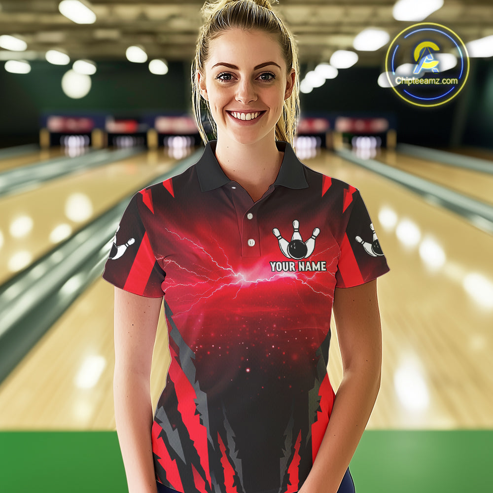 Personalized Thunder Lightning Cobra Snake Bowling Shirts For Women, Red Bowling Team Jersey TDM4644