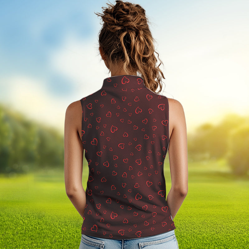 Funny Flamingo red heart pattern Women sleeveless polo shirt custom Valentine golf tops gifts for her NQS9366