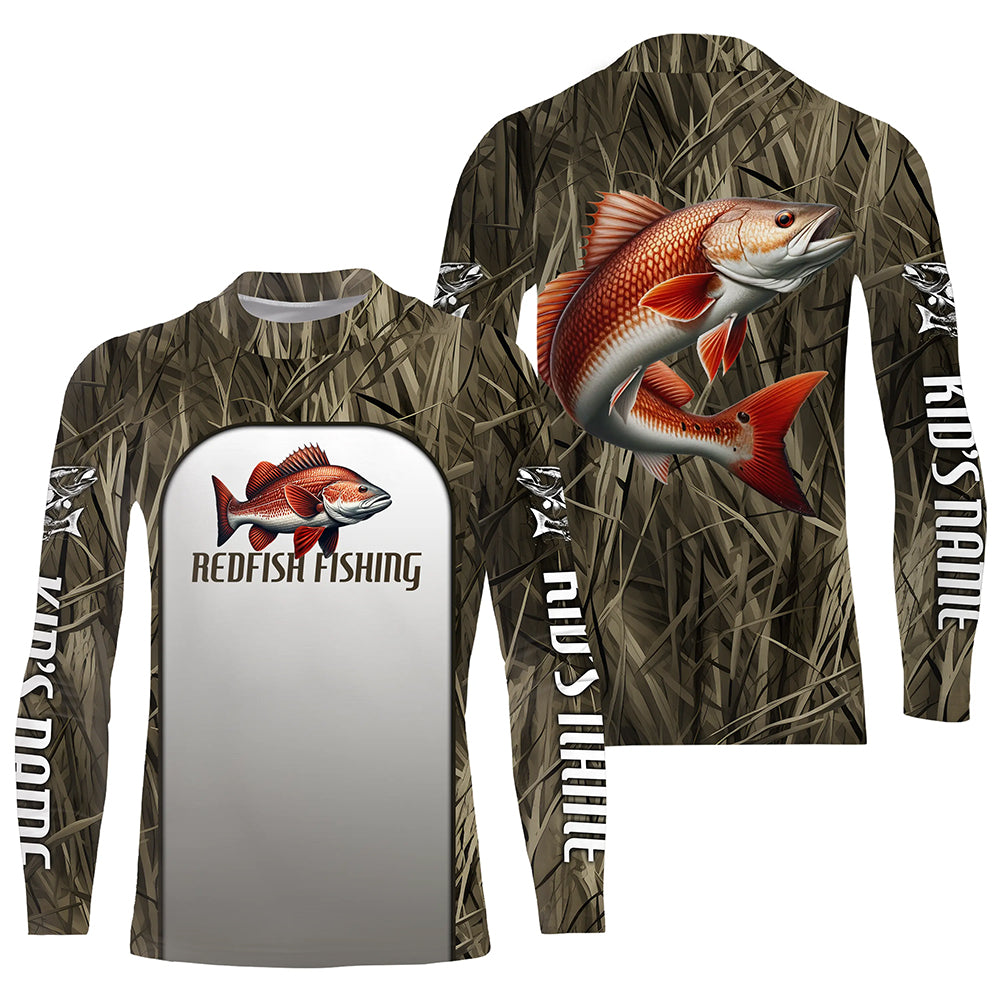 Redfish Fishing Grass Camo Custom Long Sleeve Fishing Shirts, Redfish Tournament Fishing Jerseys IPHW6533