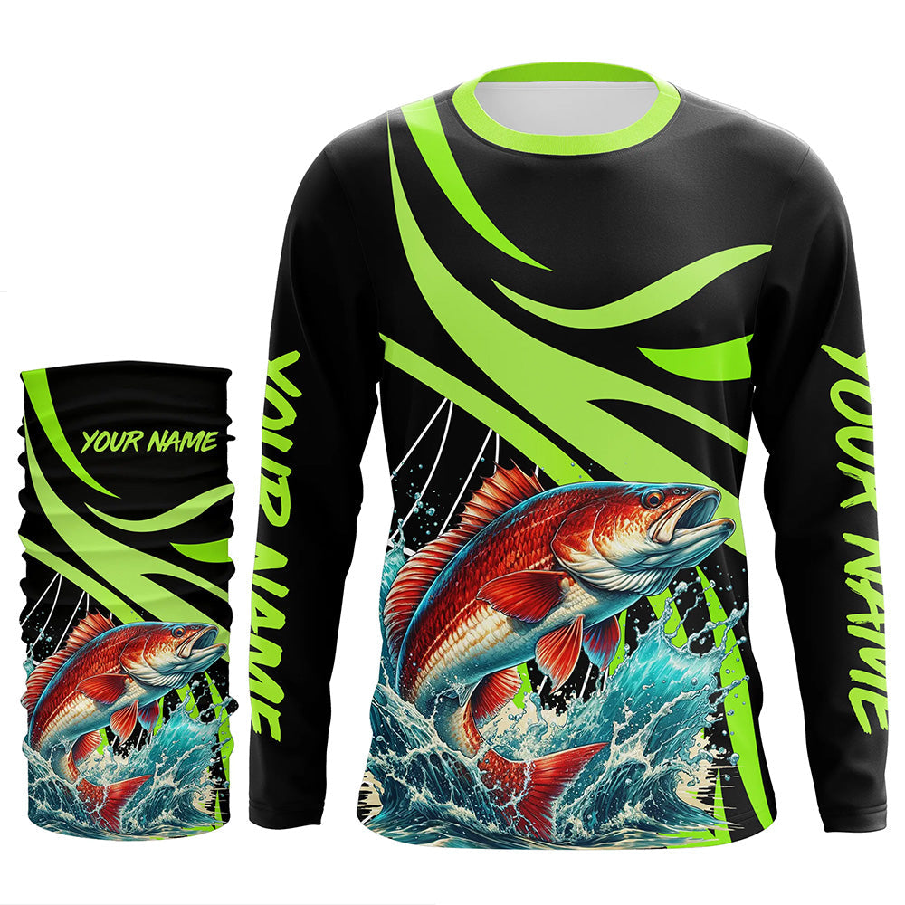 Personalized Redfish puppy Long Sleeve Fishing Shirts, Red drum Tournament Fishing Jerseys | Green NQS7425