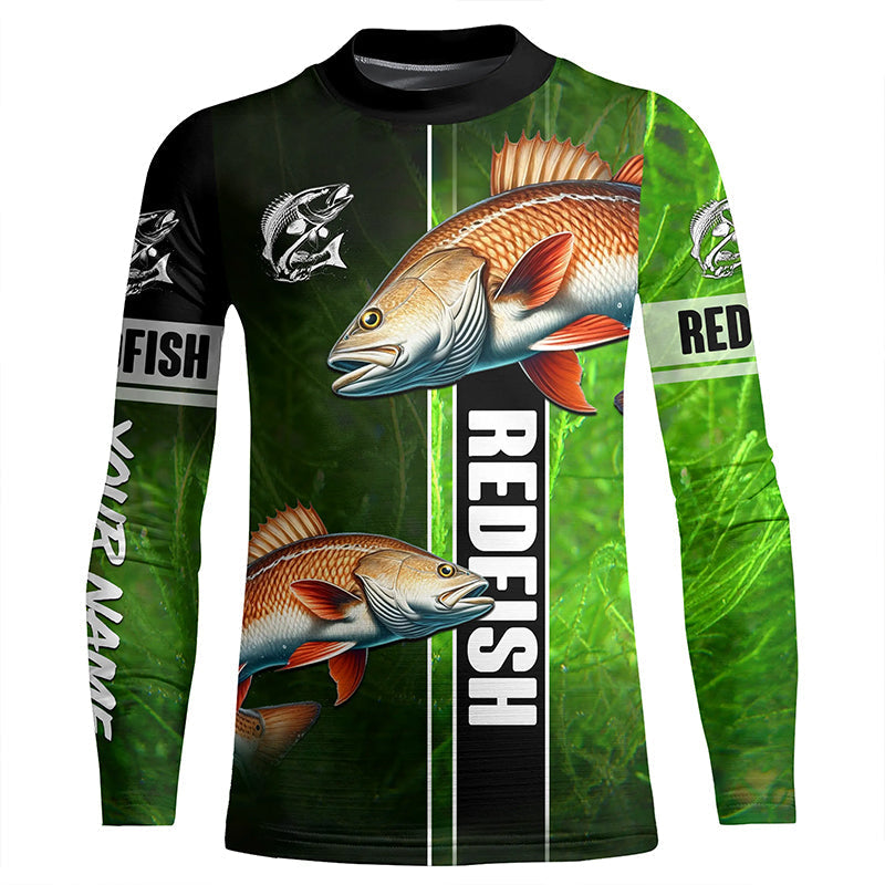 Redfish puppy drum Fishing green Customize Long Sleeve Fishing Shirts, fishing gifts for Fisherman NQS1727