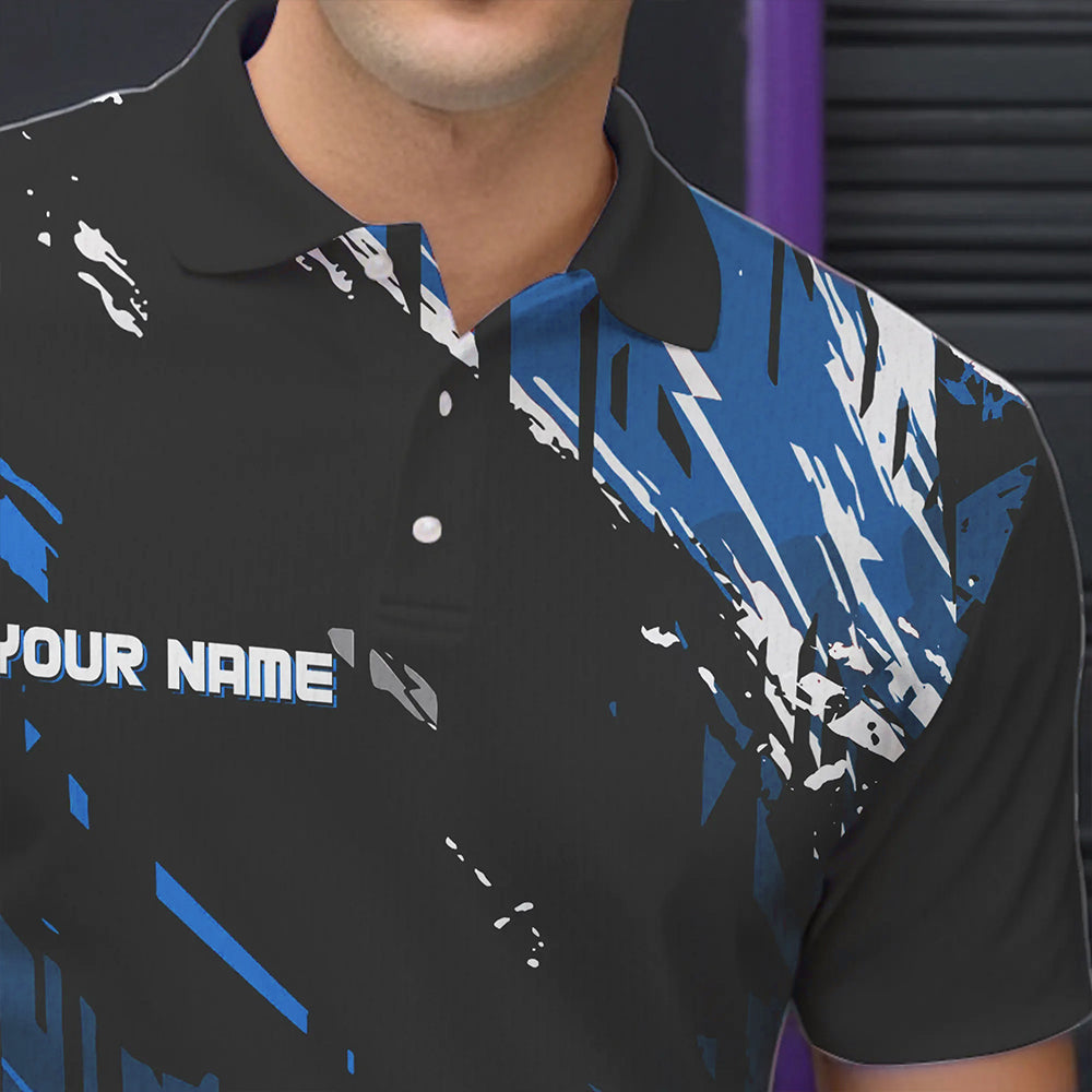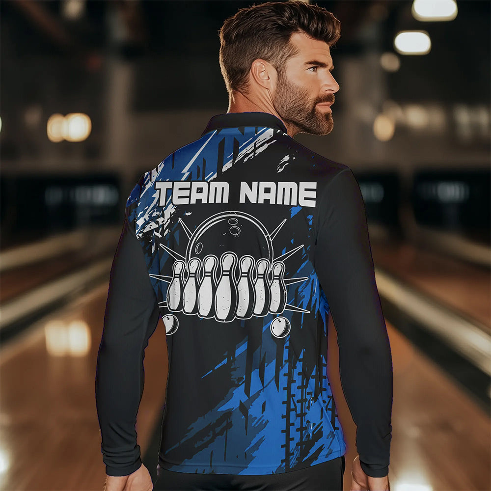 Black and Blue Mens bowling shirts Custom retro bowling ball and pins bowling team league jerseys NQS9474