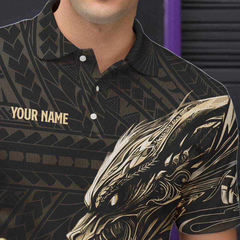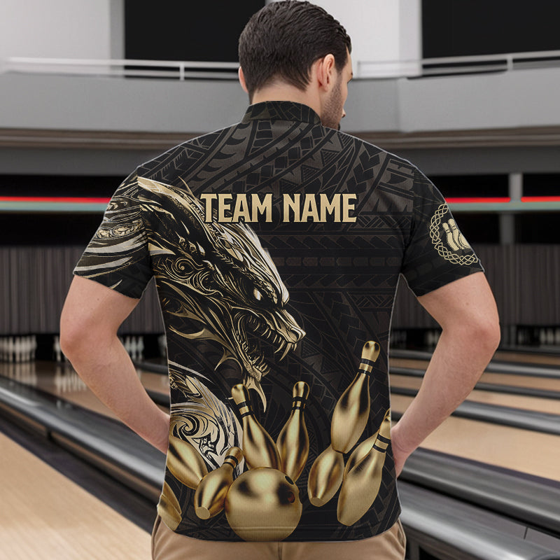 Black and Gold Dragon Tribal Bowling Polo, 1/4 Zip Shirts For Men Custom Retro Bowling Team Jerseys NQS9591