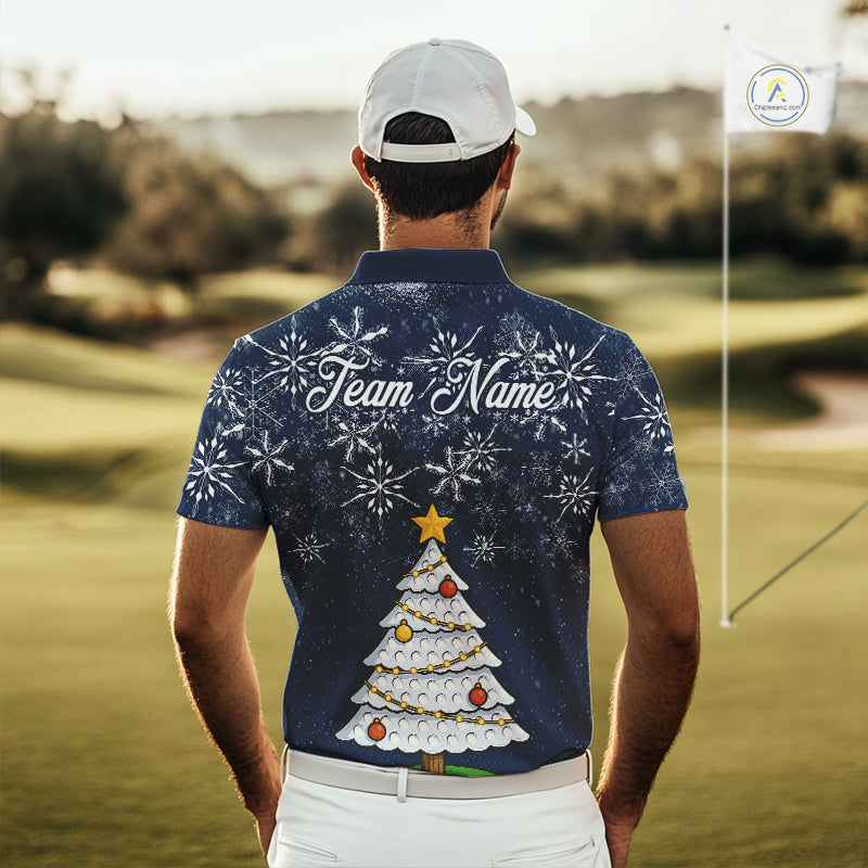 Funny Christmas Tree snowflake Mens Golf Polo shirts Custom mens christmas golf shirts | Blue Navy NQS10952