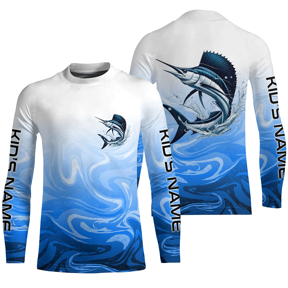 Sailfish Fishing Custom Long Sleeve Shirts, Sailfish Saltwater Fishing Apparel | Blue Camo IPHW6368