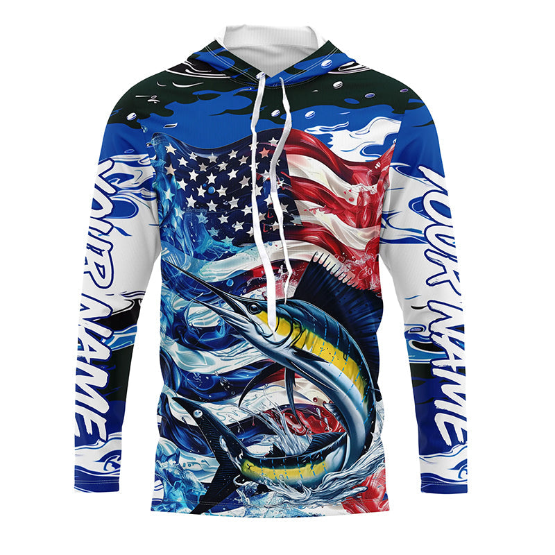 Sailfish Fishing Custom Long Sleeve Fishing Shirts, American Flag Patriotic Sailfish Fishing Shirt IPHW7023