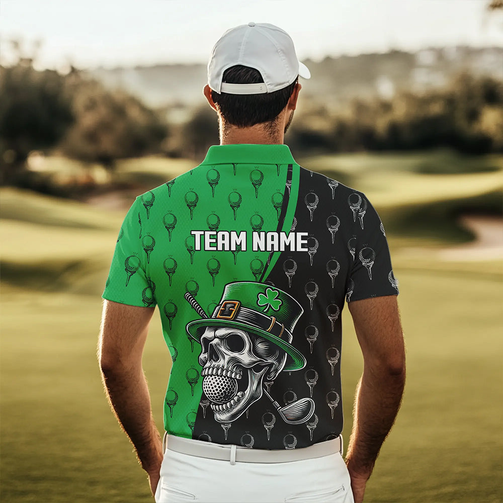 Personalized Black and Green Camo Skull Men golf polo shirts Custom St Patrick Day mens golf wear NQS9566