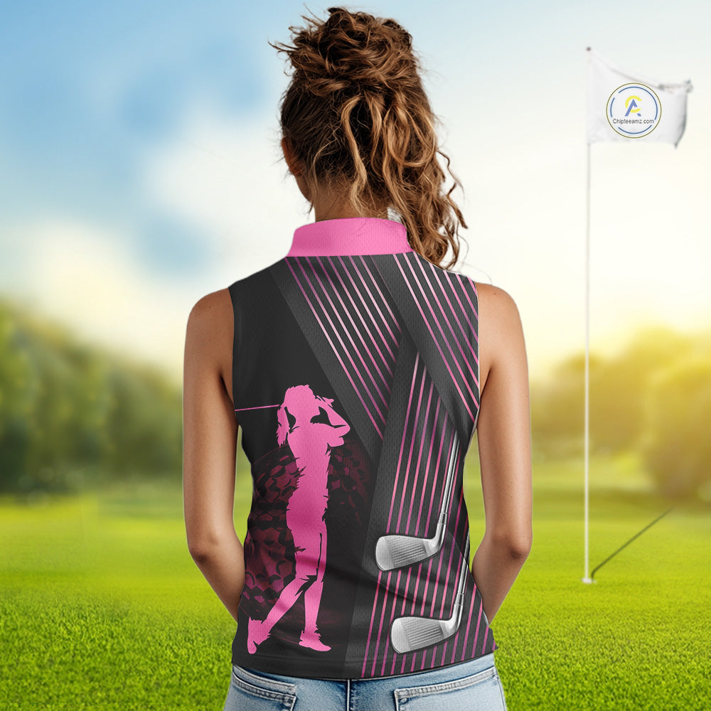 Black and pink Women Sleeveless polo shirt custom golf clubs team golf shirts, golf tops for ladies NQS10117