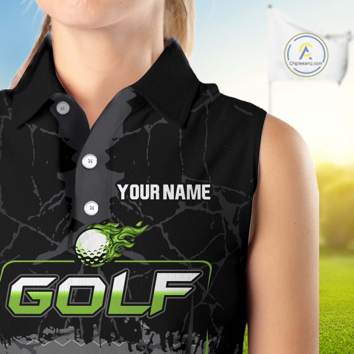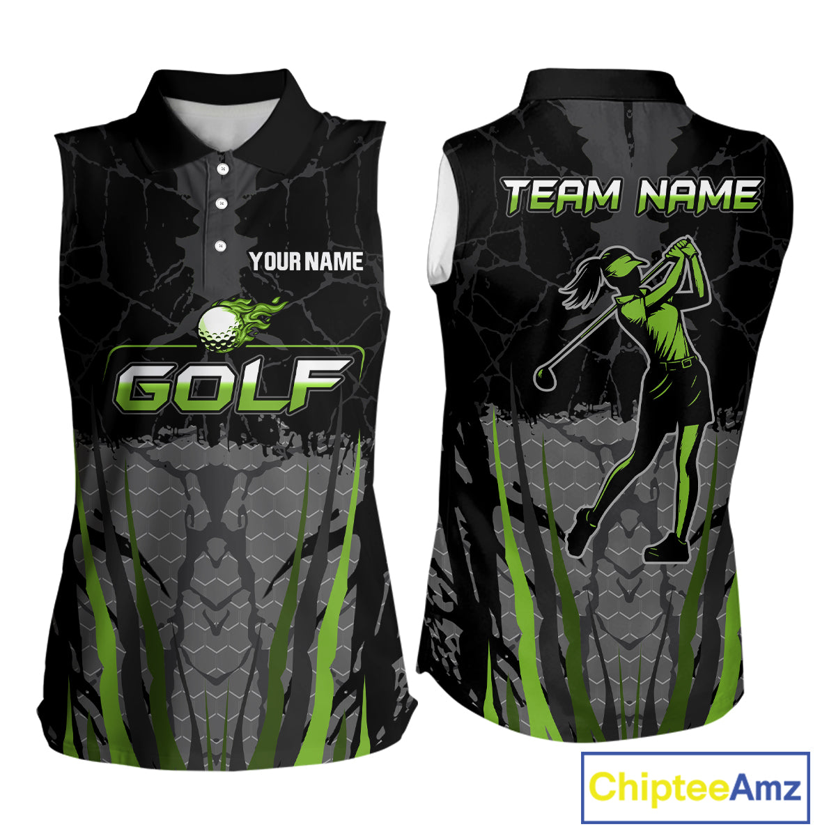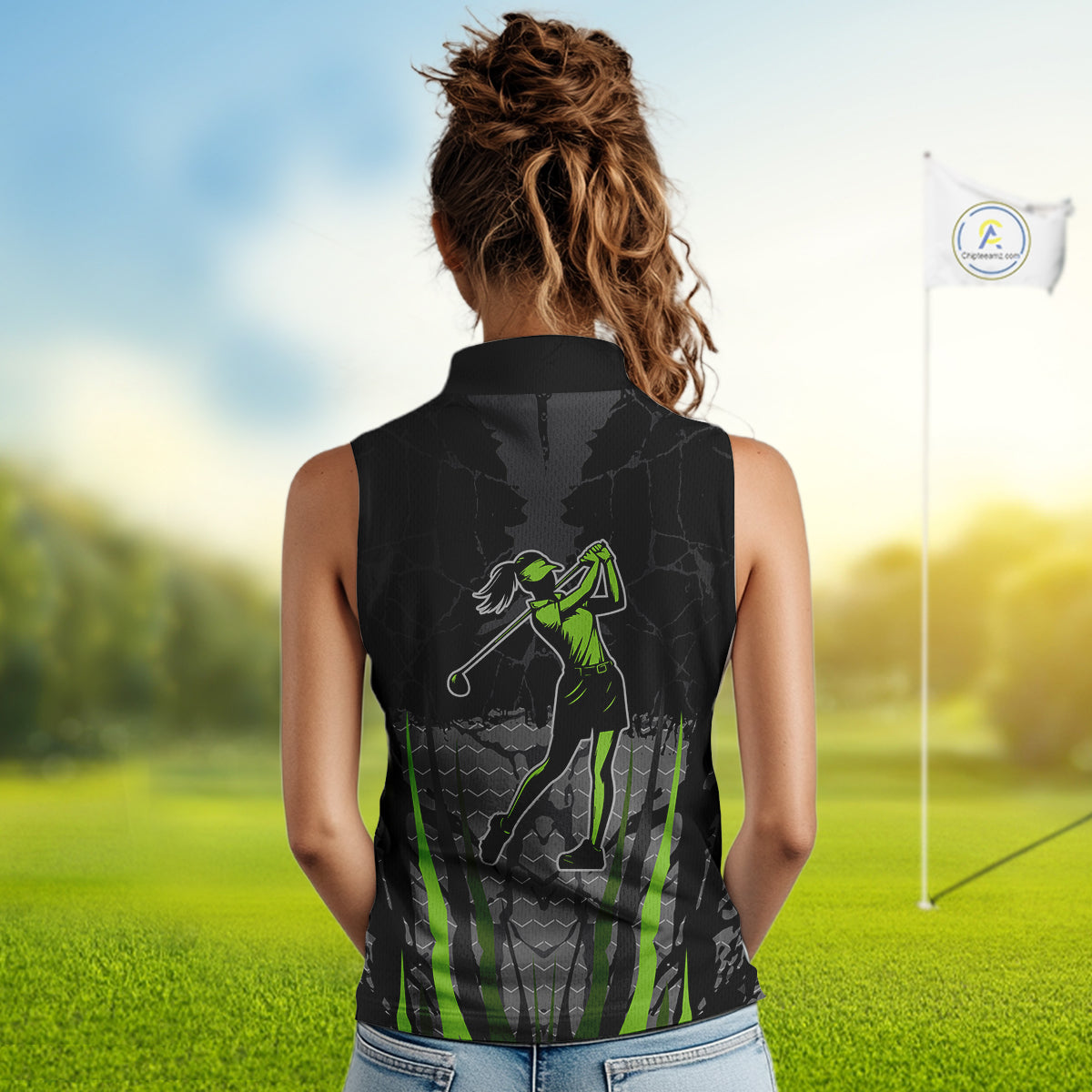 Black Camo Women sleeveless golf polo shirts custom golf attire for ladies, golfing gifts | Green NQS9995