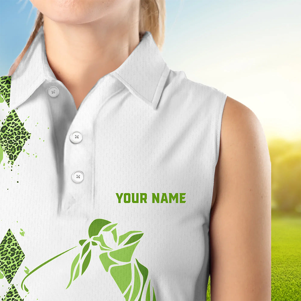 Green Leopard argyle pattern white Women sleeveless golf polo shirt custom golf tank top for women NQS9350