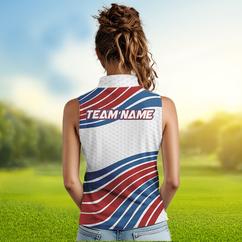 Red, White and Blue Pattern Women sleeveless polo shirts custom Patriotic golf wear for ladies NQS9381