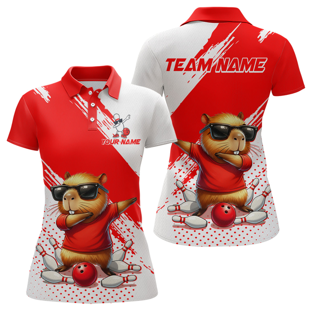 Funny Squirrel Bowling Shirts Team Men Women Bowling Jerseys Red Bowling Polo 1/4 Zip MBL215