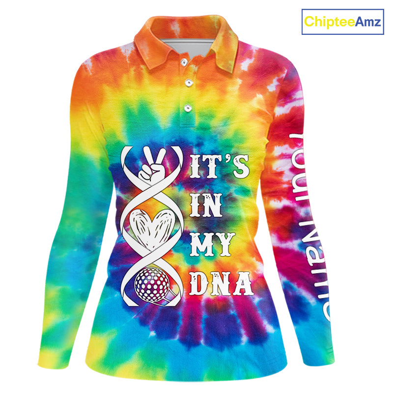 Women golf polo shirts colorful tie dye pattern custom It's in my DNA peace love golf top for ladies NQS10391
