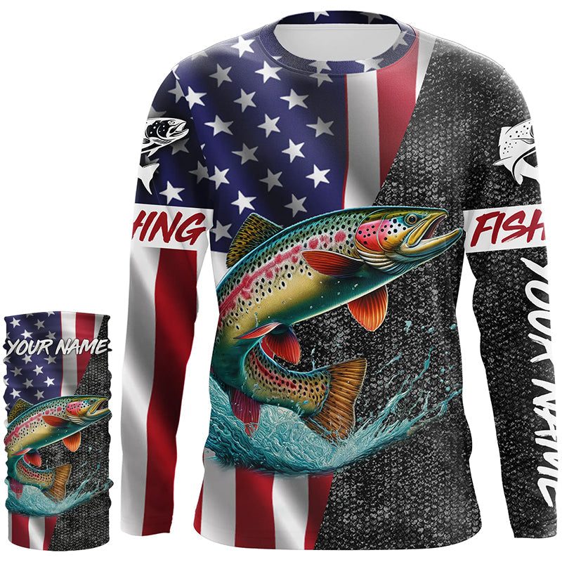 American Flag Rainbow trout Fishing Custom long sleeve performance Fishing Shirt, Trout Fishing jersey NQS7884