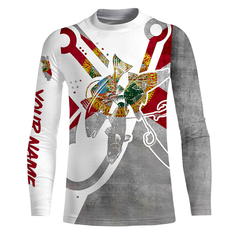 Florida inshore Slam Redfish,Trout, snook Custom name Florida fish hook Flag Long sleeve Fishing Shirt NQS4205