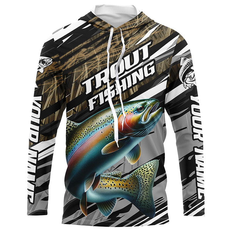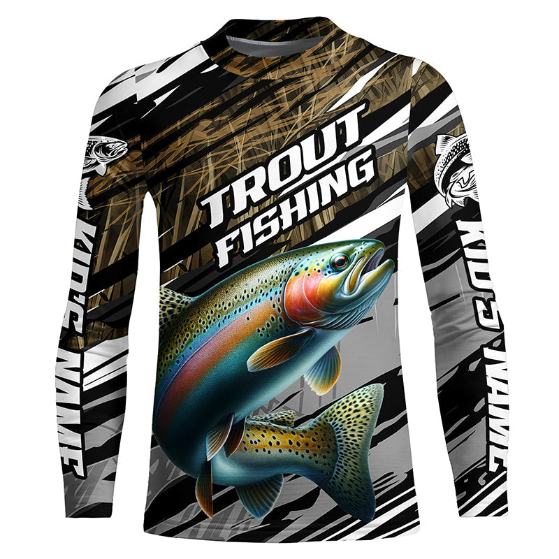 Rainbow Trout Fishing Camo Long Sleeve Fishing Shirts, Custom Steelhead Fishing Jerseys IPHW5950