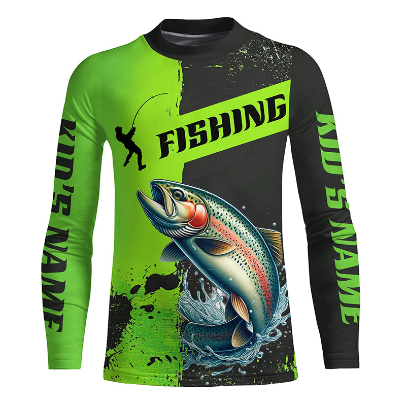 Custom Rainbow Trout Fishing Long Sleeve Tournament Shirts, Trout Fishing Jerseys | Black And Green IPHW6334