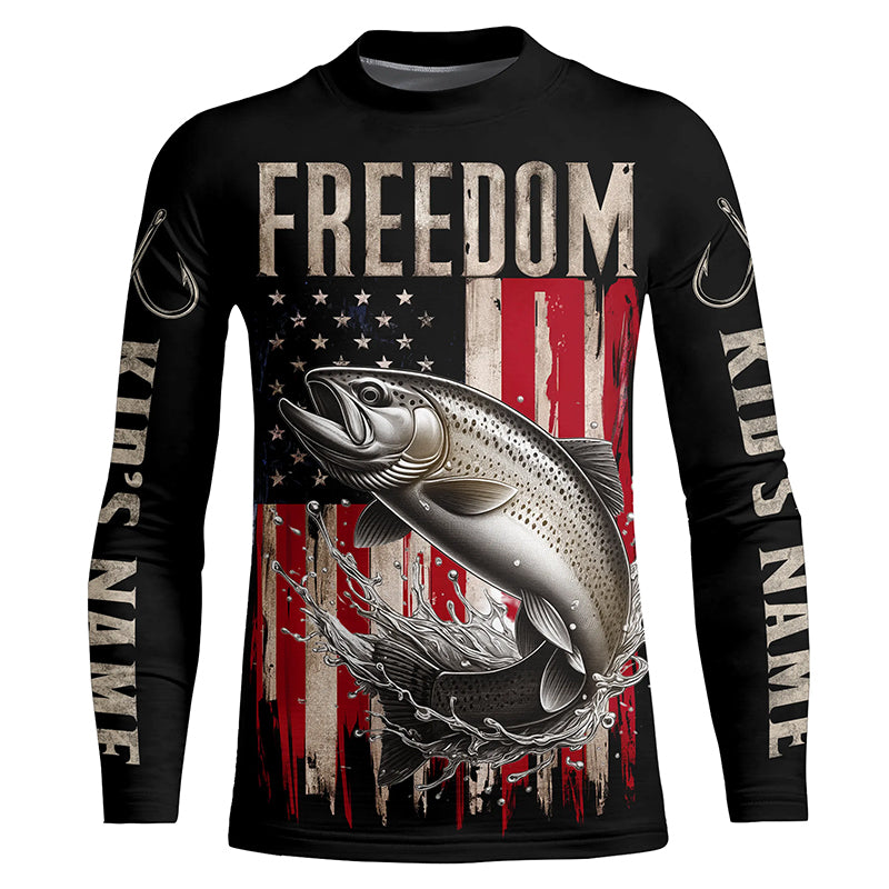 Personalized Patriotic Trout Long Sleeve Uv Protection Fishing Shirts, American Flag Fishing Shirts IPHW6809