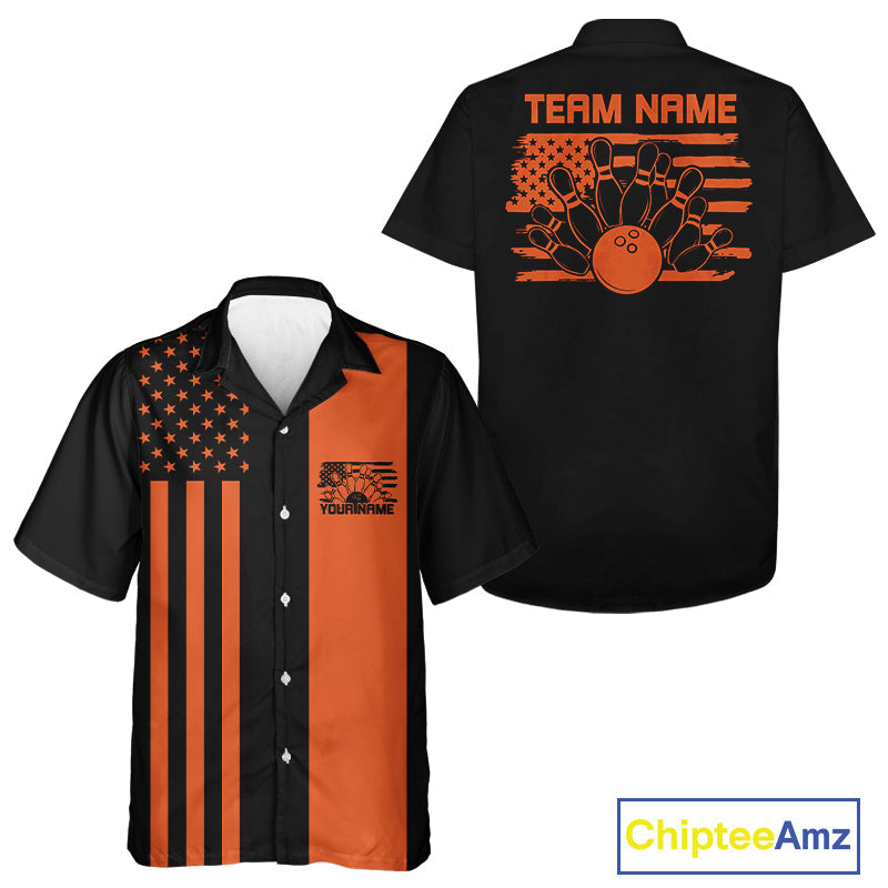 Custom Vintage US Flag Patriotic Bowling Button Up Team Shirt For Men And Women IPHW10085