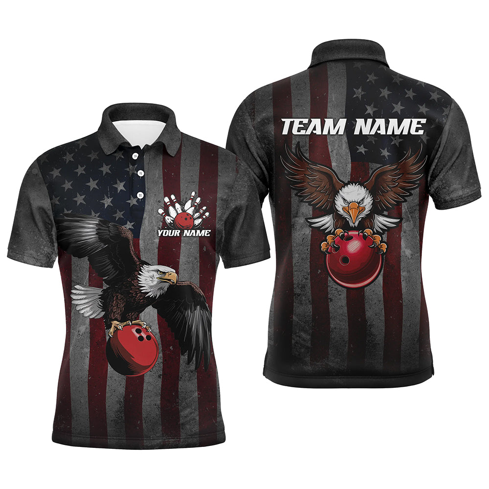 Vintage American Flag Eagle Bowling Custom Team Shirts For Men And Women, Patriotic Bowling Jersey IPHW6697