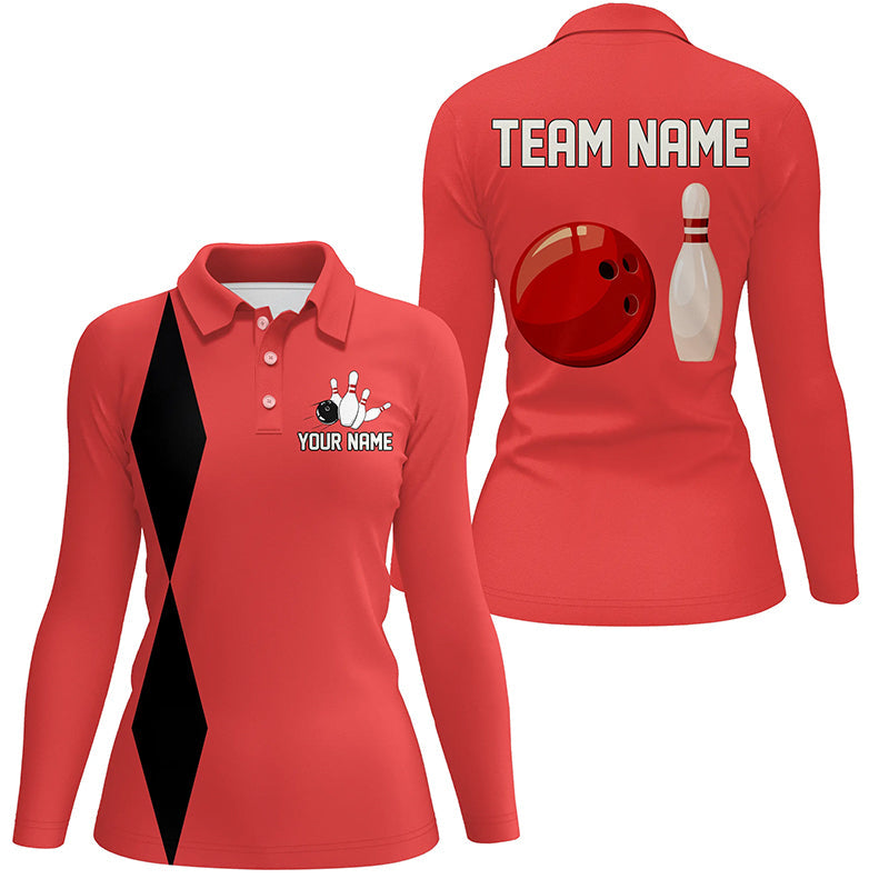 Personalized Retro Women Bowling Polo, Quarter Zip Shirts custom vintage bowling team jersey | Red NQS8004