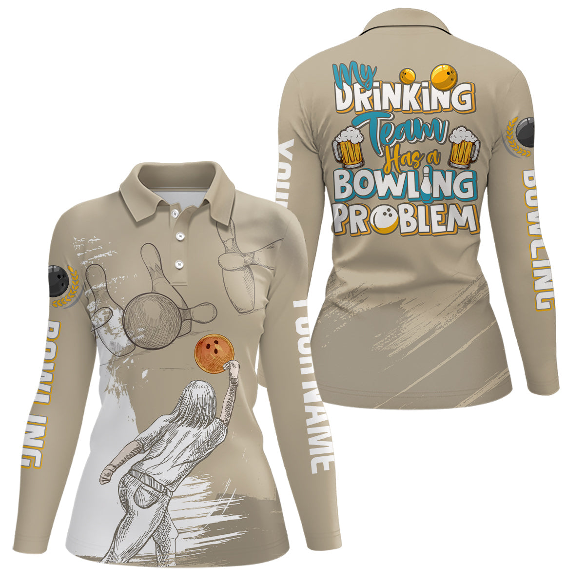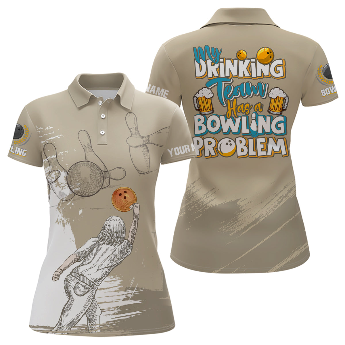 Vintage Women bowling polo shirts Custom My drinking team has a bowling problem team league jerseys NQS7017
