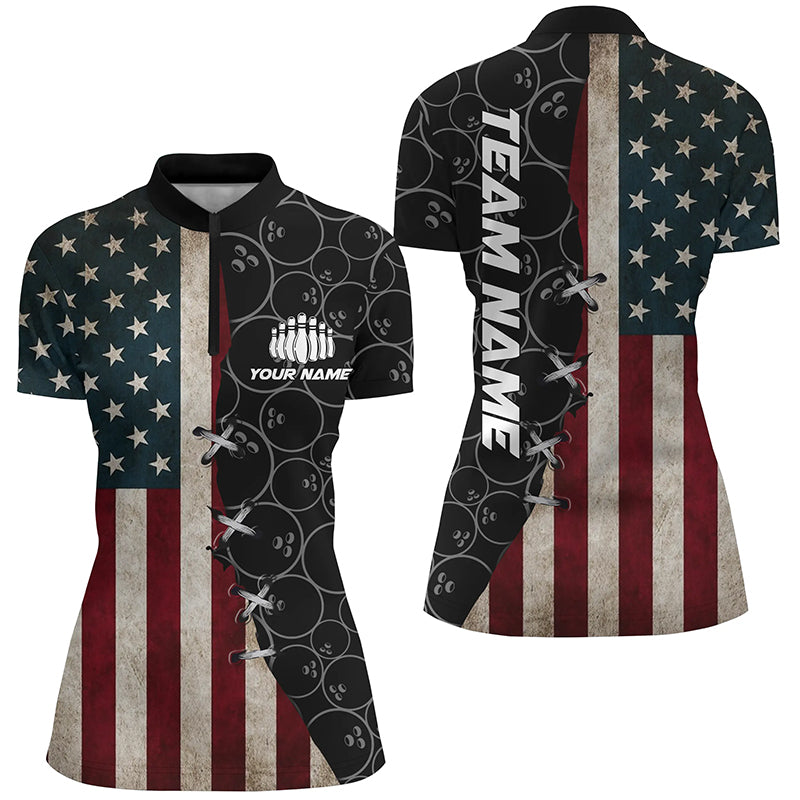 Vintage Us Flag Custom Bowling Team Shirts For Women Bowling Ball Pattern Patriotic Gifts IPHW5480