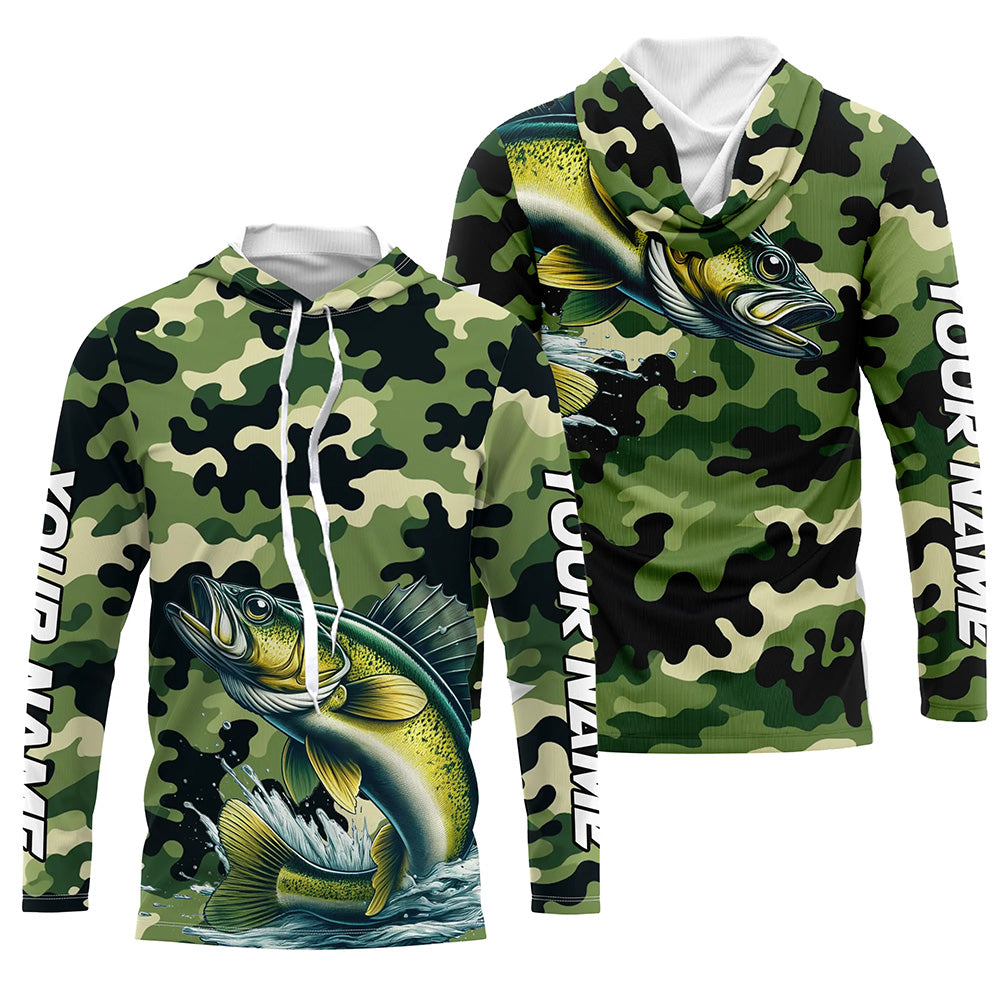 Black Green camo Walleye fishing Custom Long Sleeve Tournament Fishing Shirts, Walleye fishing Jerseys NQS7553
